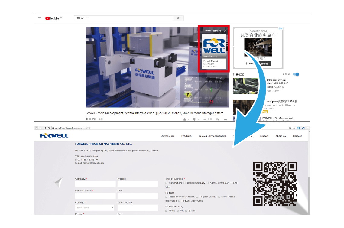 透過影片與官網互鏈將對您影片感興趣的客戶導引至企業官網,進而促使客戶與您聯繫。
